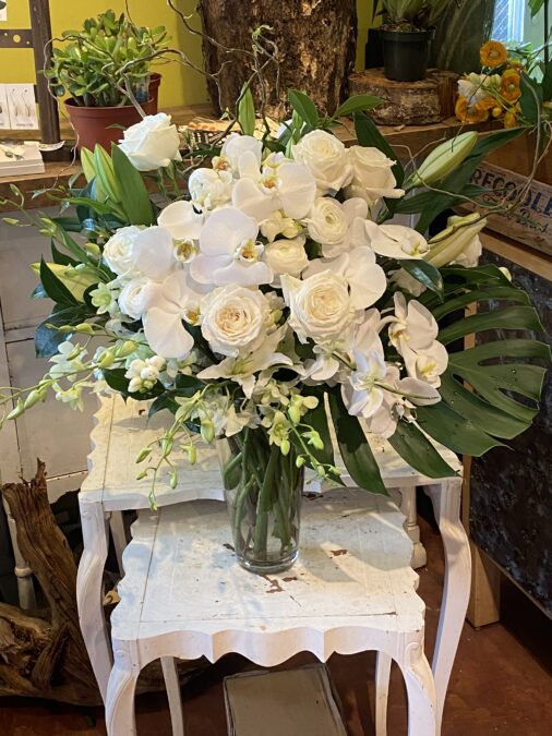 For the times you want some peace an serenity and a fresh clean crisp look. White and green Flowers can do the trick. Available in a variety of sizes from a table top centerpiece to a buffet arrangement.